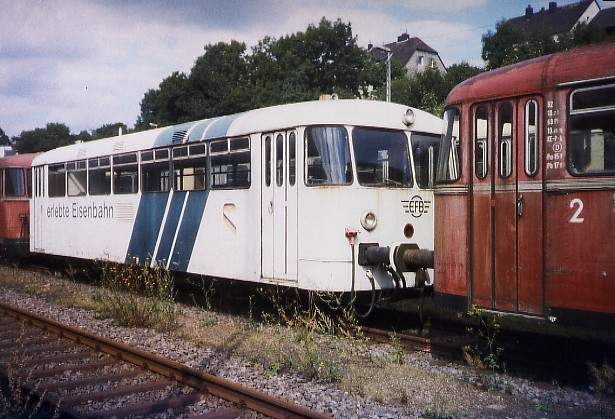 Von den Betzdorfer Eisenbahnfreunden kam dieser Schienenbus zur Hochwaldbahn am Hermeskeil. Mittlerweile wurde der Wagen wieder rot lackiert und an die ZLSM in die Niederlande verkauft.