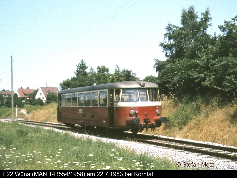 | Fabriknummer: 143554 | Baujahr: 1958 | Status: Fahrzeug wurde zerlegt | Indienststellung: 05.06.1958 Ausmusterung: 1965 Verbleib: Fahrzeug wurde verkauft an WN - Württembergische Nebenbahnen | Änderungsmitteilung |