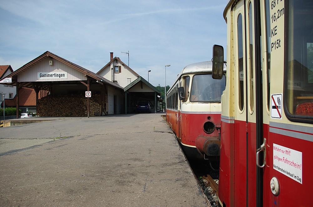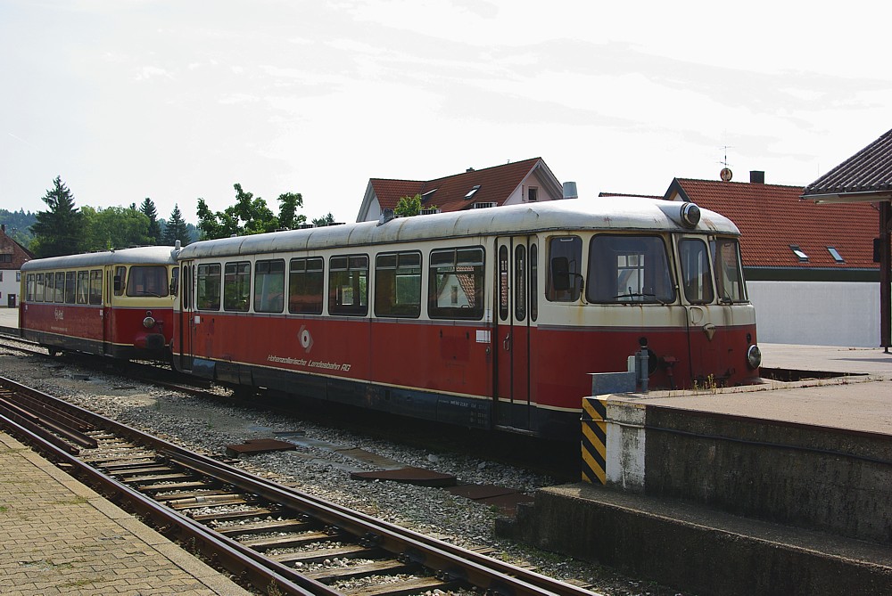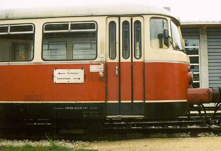 Im Regen zeigt sich hier VT 4 bei der HzL in Gammertingen am 31.05.2003. |