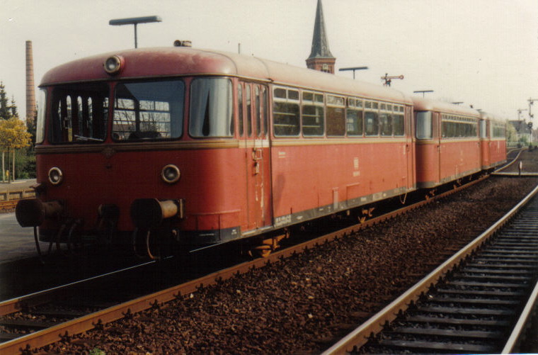 998 891 + 998 063 + 798 776 am 03.08.1989 im Bahnhof Neumünster, Gleis 4.