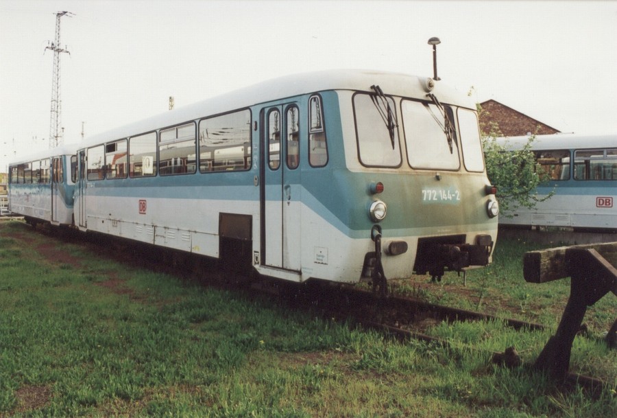 772 144 und ein Steuerwagen im Bw Stendal am 02.05.1999.