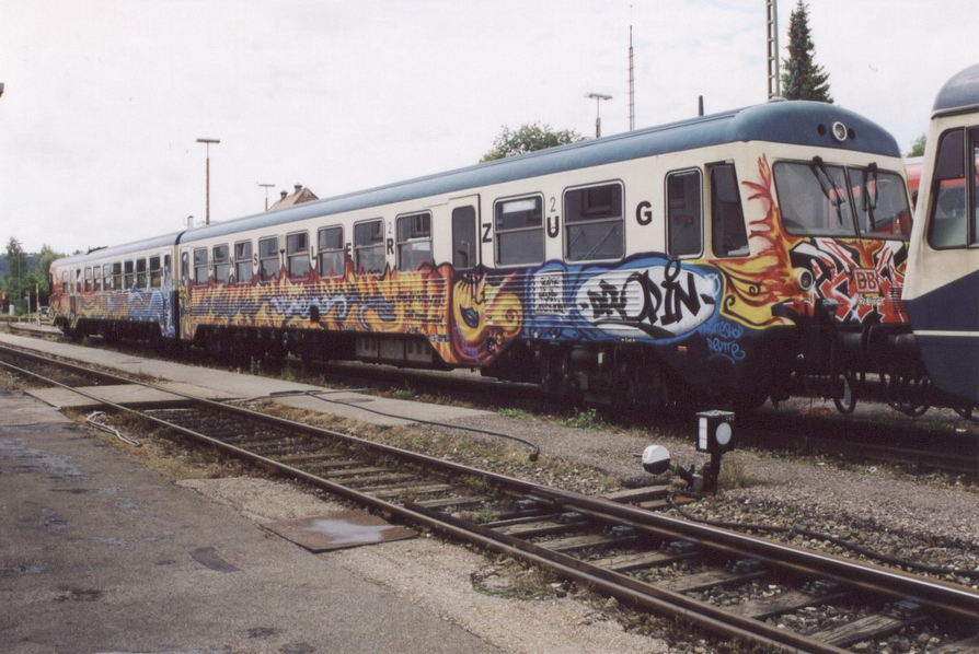 Der Kopf des 628 013 und eine weitere 628-Garnitur im Bf. Kempten am 17.07.1975.