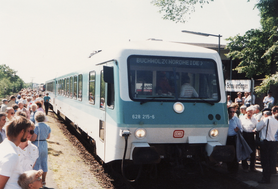 | 628 215-6 am 28.05.1989 im Bahnhof von Schneeverdingen ( Eröffnung der neuen Heidebahn ). |