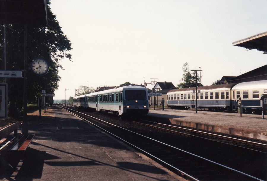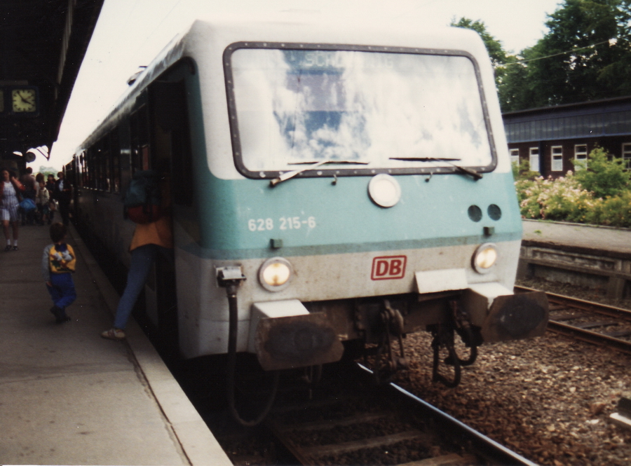 | 628 215 - 6 am 28.05.1989 als erster 628 im Bahnhof Soltau ( Einweihung der Heidebahn ). |
