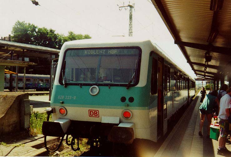 628 223 am 09.08.1997 in Gießen als RE 3910 nach Koblenz.