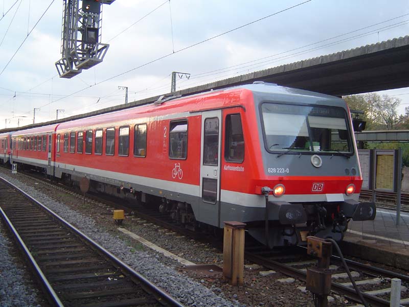 628 223 am 02.11.2006 in Gießen. Der Triebwagen gehört der DB-Regio-Tochter Kurhessenbahn.