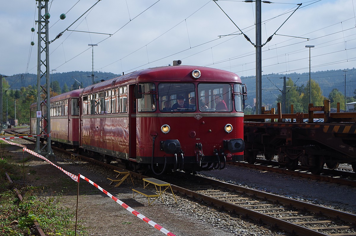 | Am 04.10.2014 pendelte die Schienenbusgarnitur 796 625 und 997 604+605 zwischen dem Bahnhof Rottweil und dem Bahnbetriebswerk der Eisenbahnfreunde Zollernbahn. |