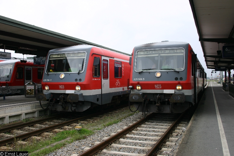 | 628 560 (re) und zwei weitere 628er in Mühldorf am 14.09.2005. |