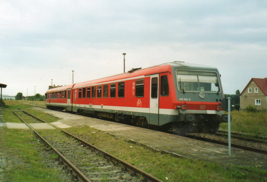 | 628 602 im Bahnhof Aken/Elbe am 14.8.2005. Strecke:Köthen-Aken in Sachsen-Anhalt |