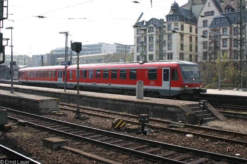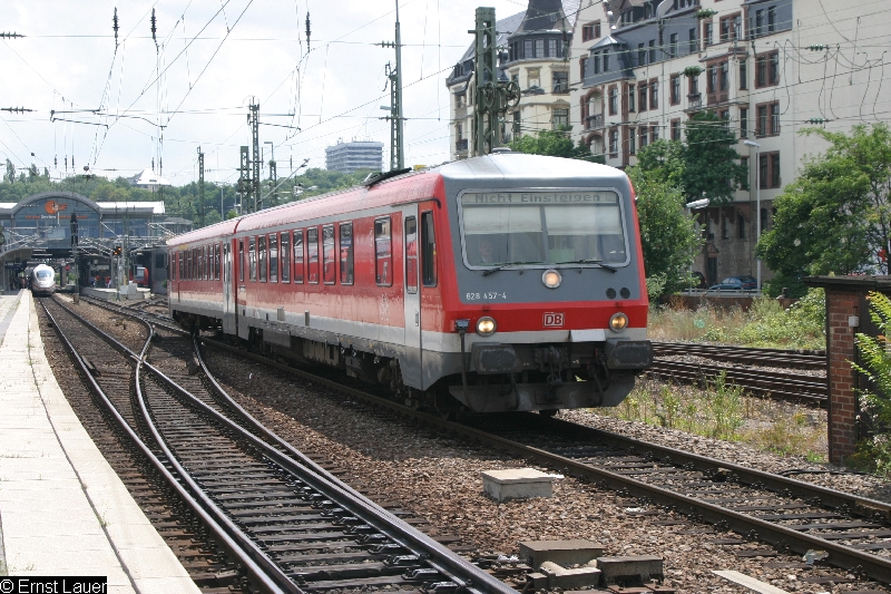| 628 457 bei der Ausfahrt aus dem Mainzer Hbf. am 21.07.2005. |