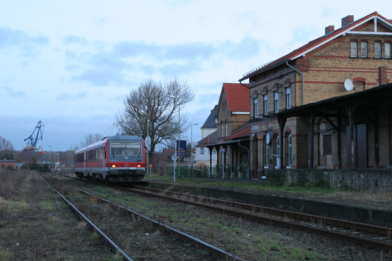 | Ebenfalls am 08.12.2007 der 628 602 im Bahnhof Aken. |